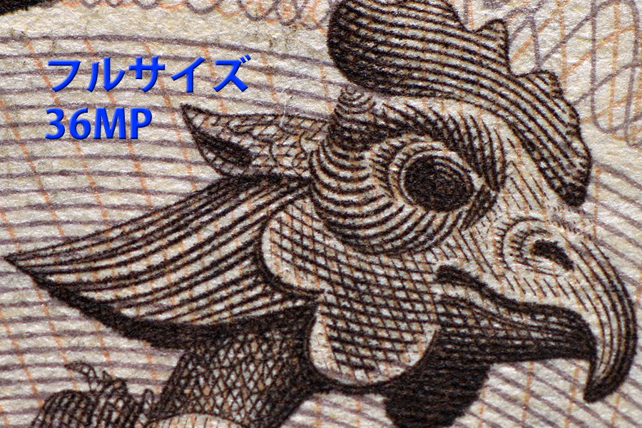D800Eの場合、フルサイズ(35.9mm×24.0mm)だと、凡そ3620万ピクセルの画像が得られますが、DX(23.4mm×15.6mm)にクロップ(撮影範囲が42%程度)すると、1536万ピクセルの画像が得られます。今どきの1500万画素って、入門のコンパクトや携帯電話にも負けちゃうぜ!と思われるかも知れませんが、撮像素子の面積そのものが大きいので、写質は段違いに優れています。それとNikon 1で利用すると、正に[マクロレンズ]としての利用が可能です。