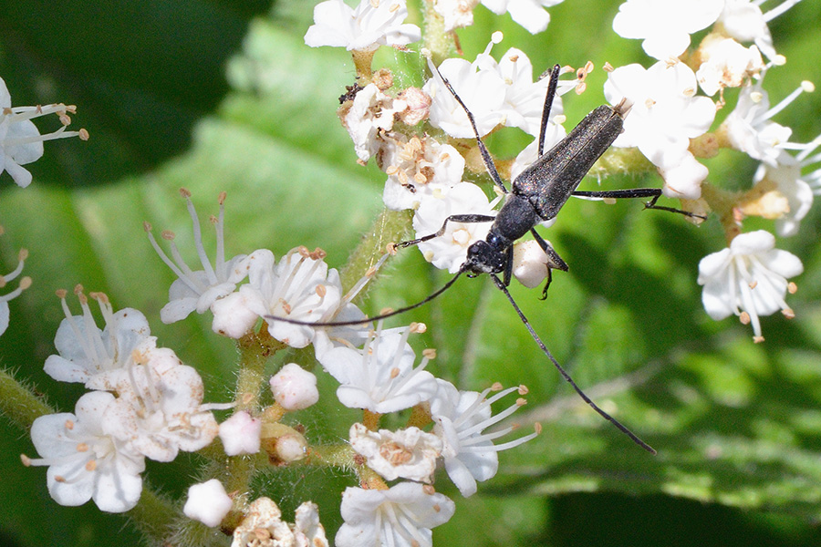 山のガマズミにはホンドアオバホソハナカミキリ(アオバホソハナカミキリ)が