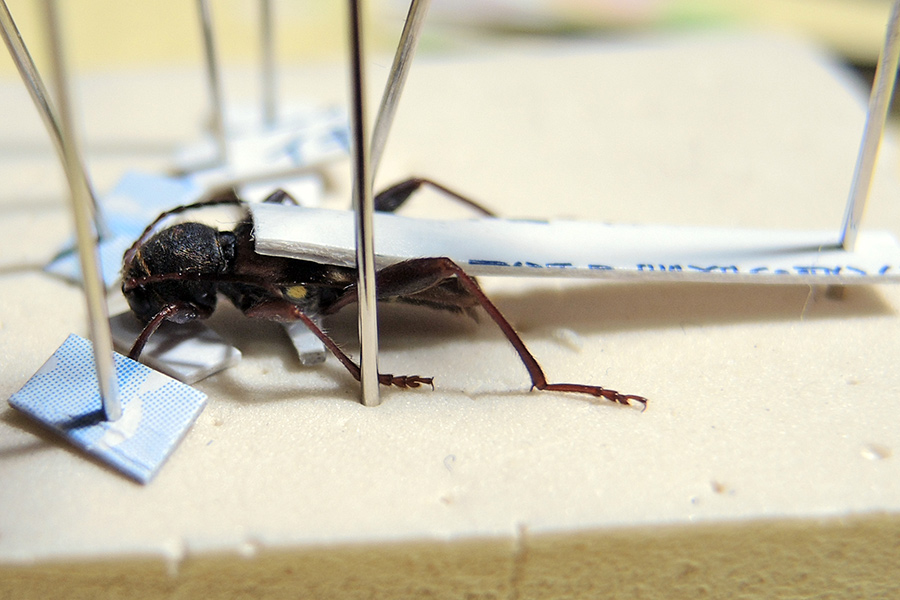 ・・・で、展足作業中の、中型のアカネトラカミキリです。