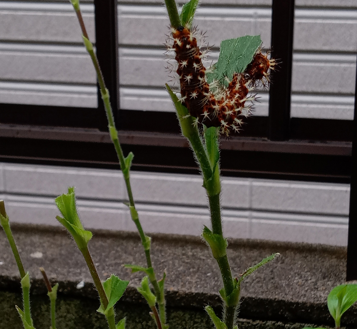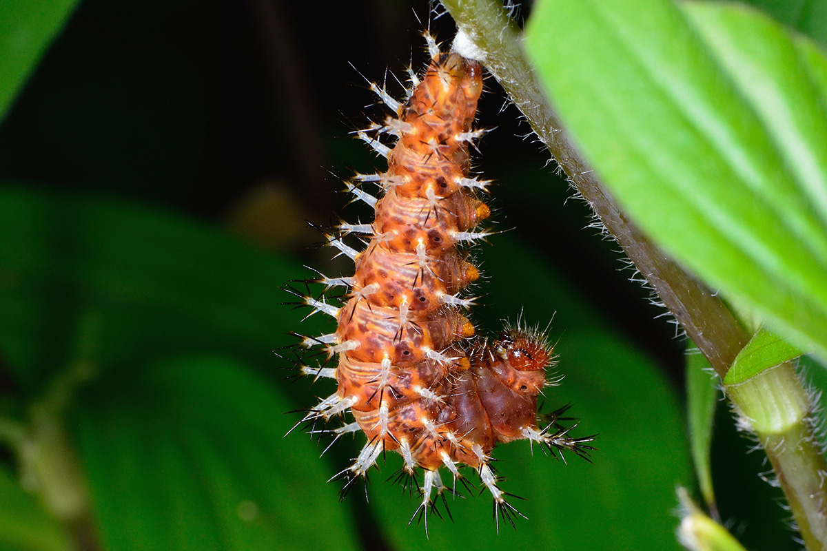 幼虫はいかにも刺さりそうな棘を生やしていますが、無毒で刺されることはありません。
