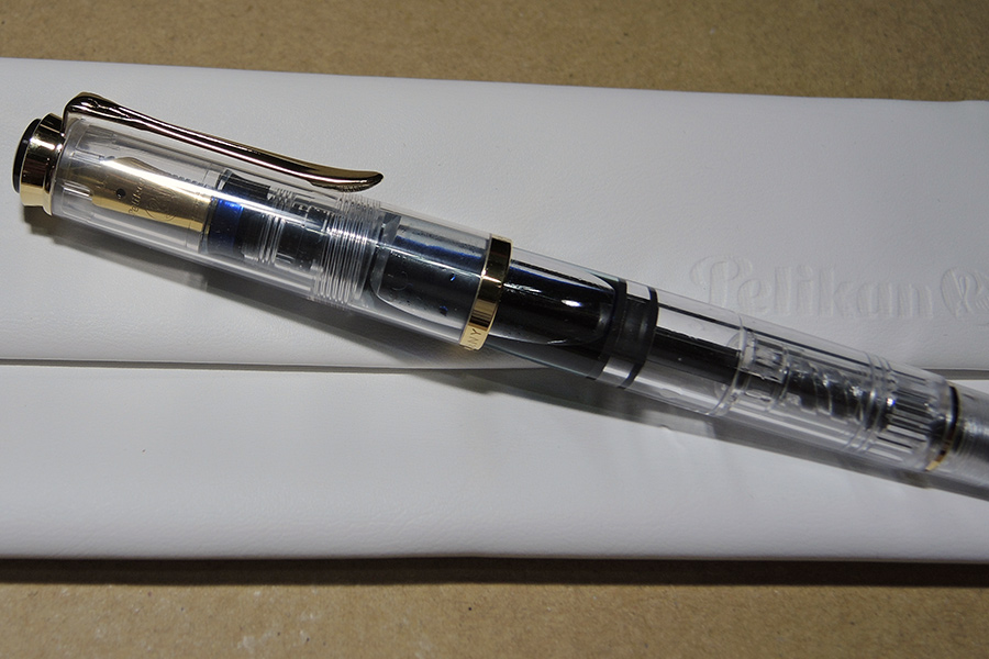 遥か昔、大井町に通っていたころ、阪急百貨店(今は様子が変わってます)が百貨店としてあったころ、ホテルもマックなかった頃に、そこで名入れしてもらったペリカンが割れてしまいました。なぜ、スーベレーンじゃなく、これを選んでしまったのか?多分当時細い字を書くことが多かったからだろうと思います。工場の勤労セクションで仕事をさせてもらっていたのですが、当時正式書類は黒インクが必須で、会社でもつけペンが準備されており、ボールペンは通常事務のみに使用が制限されていました。そんな仕事に慣れた頃に思い切って購入した思い出の品でもあります。