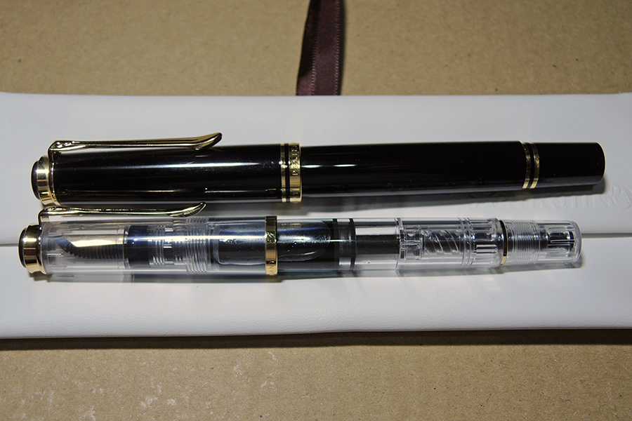 並べてみると、ちょっとだけデモンストレータの方が短く、M600とM400の差ってこのくらいなんですね。キャップをお尻に嵌めて書けば、日本人の手にはM400サイズでも問題ありません。