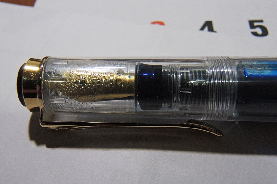 インクの種類によって差があるでしょうけど、同じようなことはどの万年筆にも起こっていて、どんなにキャップの密閉性が良くても、この結露のために吸入器本体のインクが濃くなり、いずれ固着してしまうということになるんだろうな、と納得させられたのでした。