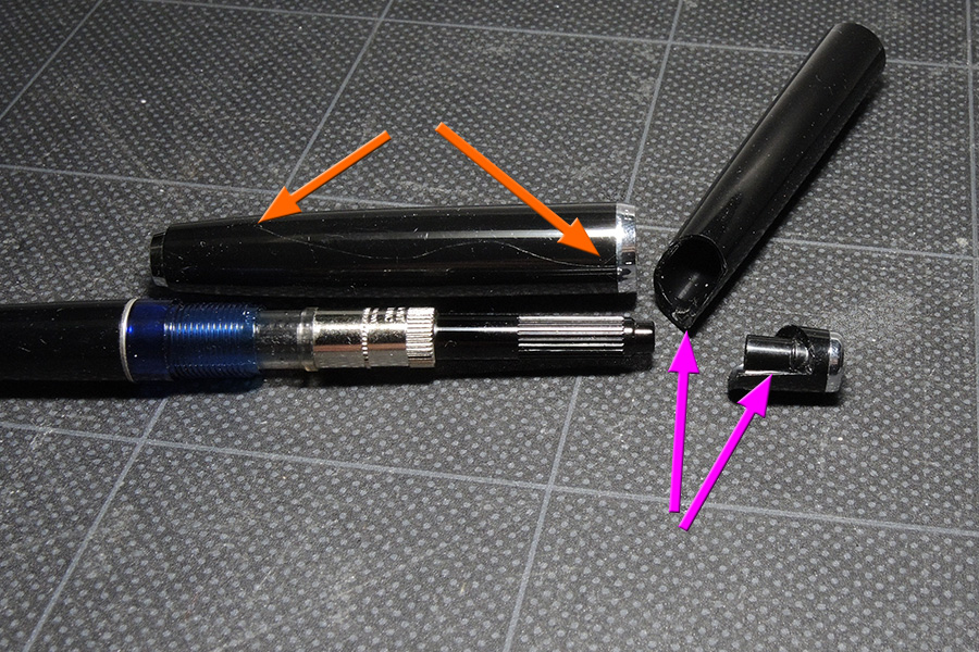内側なんですが、これまで透明なキャップの万年筆を使ったことが無かったので、まったく気付きませんでした。