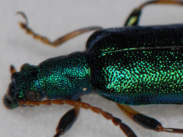 今回も被写体は、手元にある虫体では多分一番厄介な、アオハムシダマシ君です。