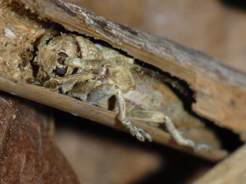 かなり細い笹から出たハイイロヤハズカミキリです。