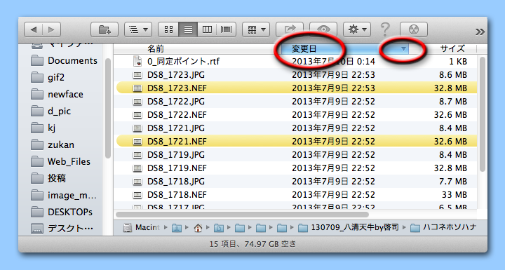 デフォルトの[並び順序]が『変更日』に指定されていました。