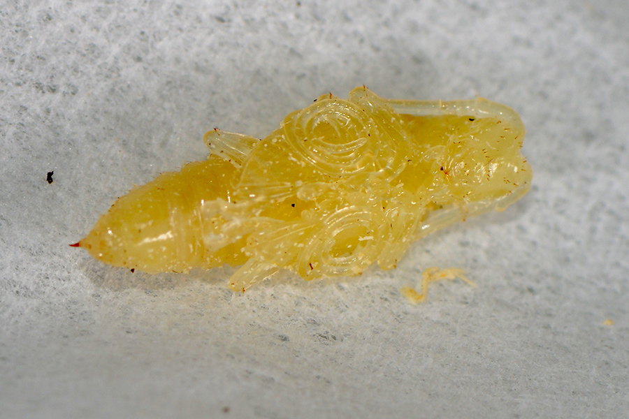 敢えて割り出すことはしてませんが、幼虫や蛹の情報は得難いので、材の整理のときに落ちたり、覗いて見えた時、無理の無い範囲で取り出して記録するようにしています。