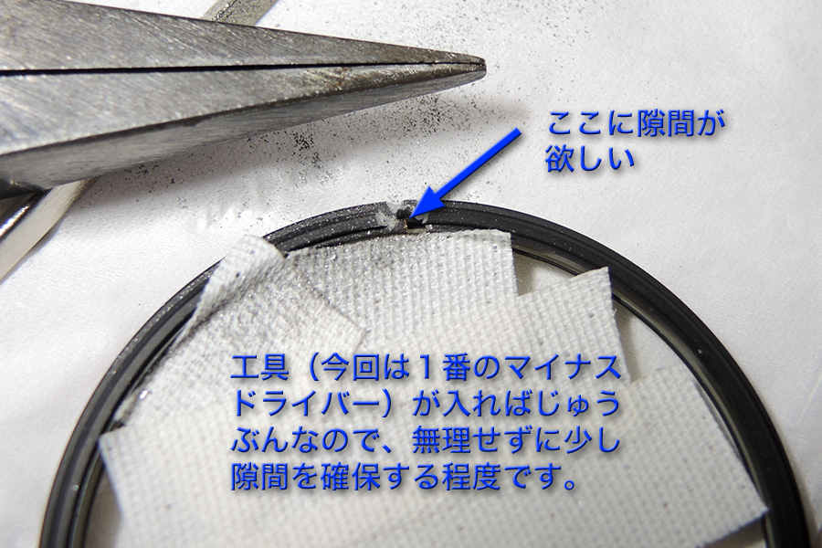 ・・・ケンコーのレンズ押さえは、角形断面のかなりしっかりしたものでしたが、フィルタ枠そのものはアルミ製で、削るのは簡単でした。