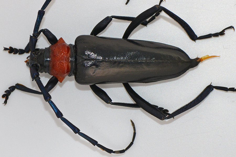 愛知県(2012年)、埼玉県(2013年)で相次いで確認された移入種、クロジャコウカミキリです。