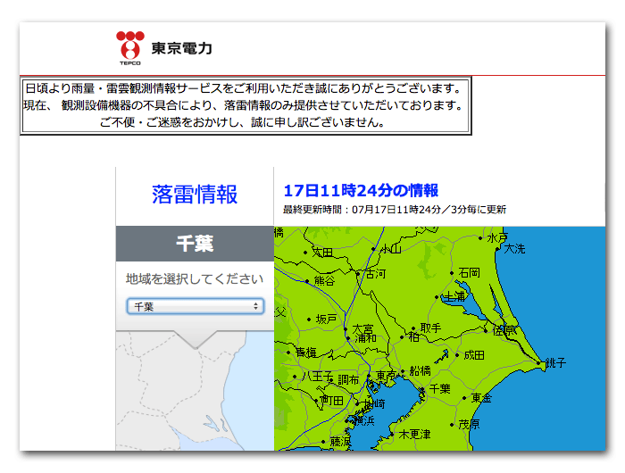→ TEPCO 雨量・雷観測情報