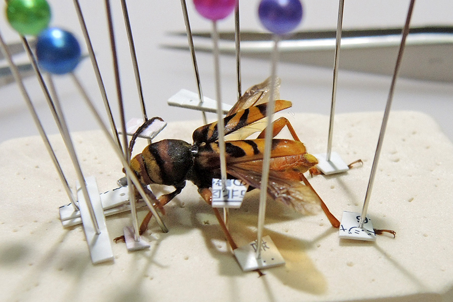 跗節6箇所を[ KOH16 Method ]で押さえ、後翅と触角が下がらないよう、