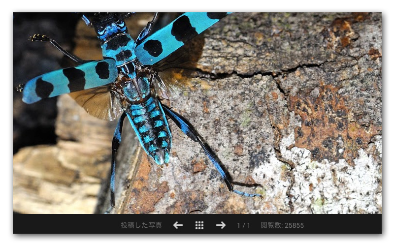 日本を代表する美麗昆虫、ルリボシカミキリでした。
