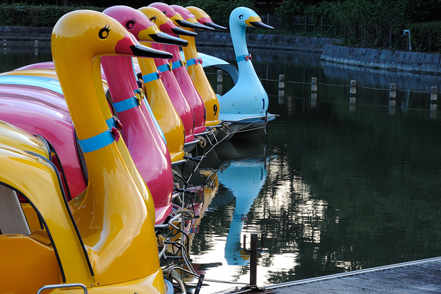 Swan boats at the Kashiwanoha-park in Kashiwa-city, Chiba, Japan.