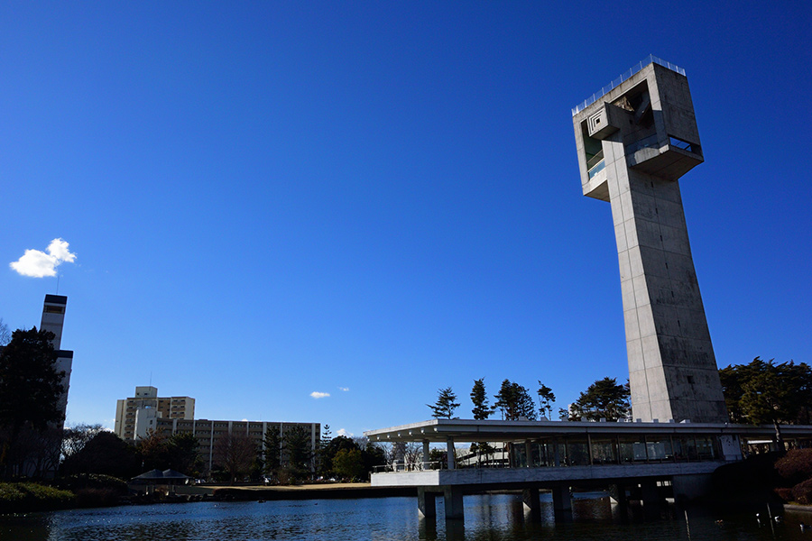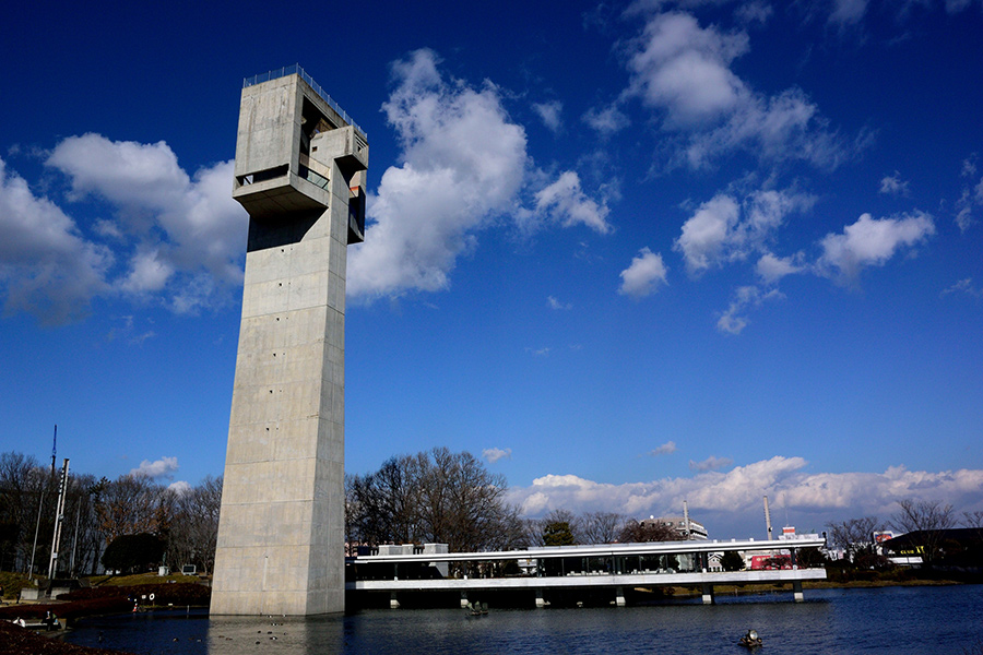 池の中に浮かぶように休憩所があり、その売店前から有料エレベータに乗って、コンクリート製の展望台の上に昇ることができます。