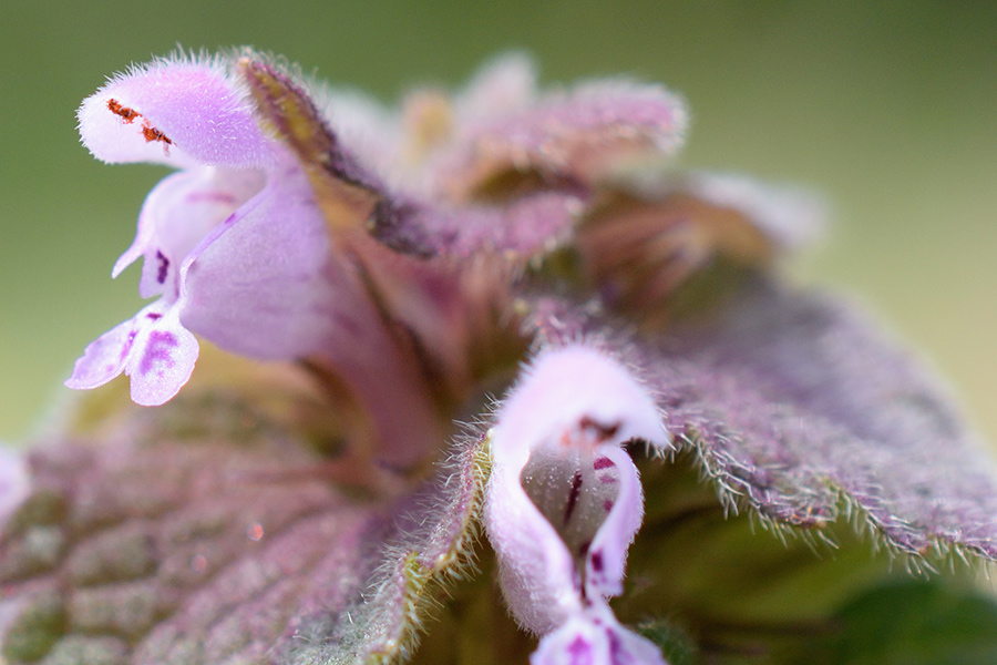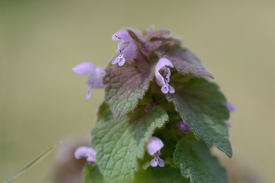 モミジバヒメオドリコソウとの違いは、(モミジバやキレハの名前の元になった?)葉の大きな切れ込みは無く、葉の表面は鱗状(網目状)の皺々になっています。