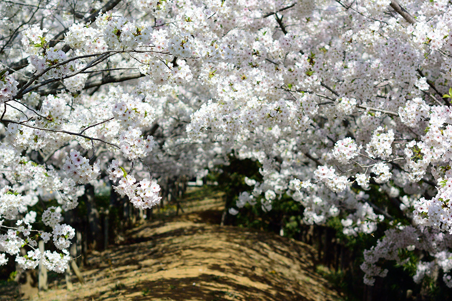 柏の葉公園のイズヨシノのトンネルは、目の高さに満開の花達が迫る絶景ポイントになります。