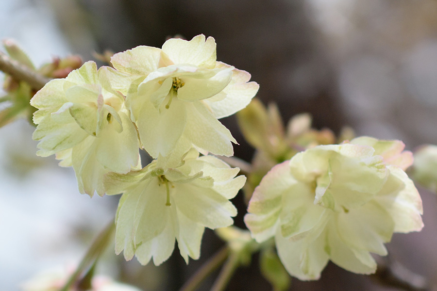 この色は花弁にある葉緑体のためですが、満開を過ぎたころから赤味を帯びてきます。