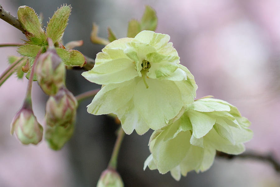 この色は花弁にある葉緑体のためですが、満開を過ぎたころから赤味を帯びてきます。