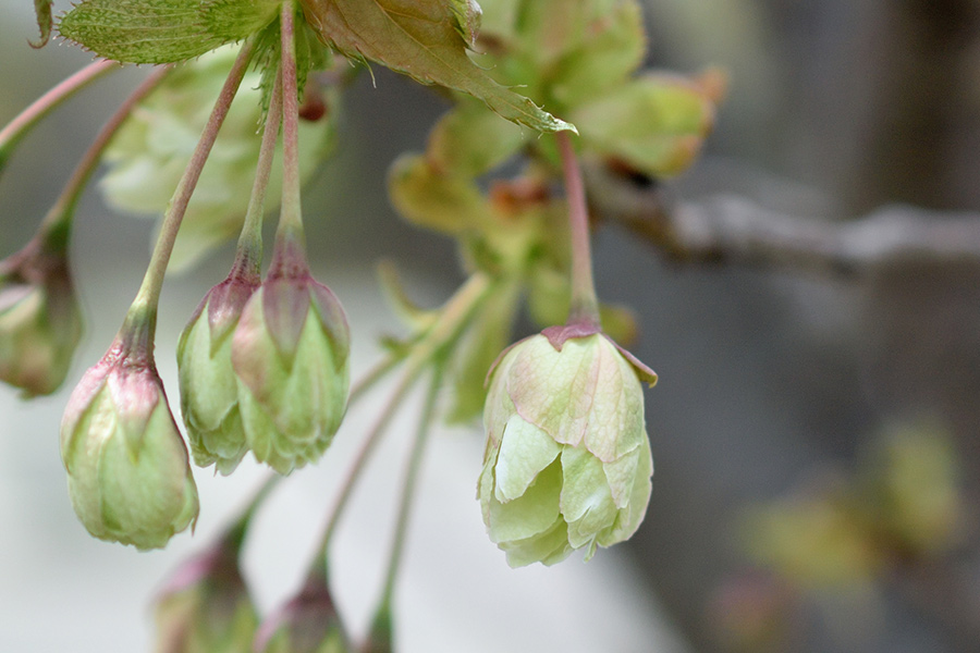 この色は花弁にある葉緑体のためですが、満開を過ぎたころから赤味を帯びてきます。