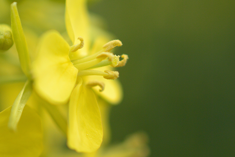 菜の花といっても実はいろいろあるようで、日本の河川敷などに繁茂しているのはセイヨウアブラナやセイヨウカラシナが多いそうですが、茎を巻いていないのでセイヨウカラシナのようです。