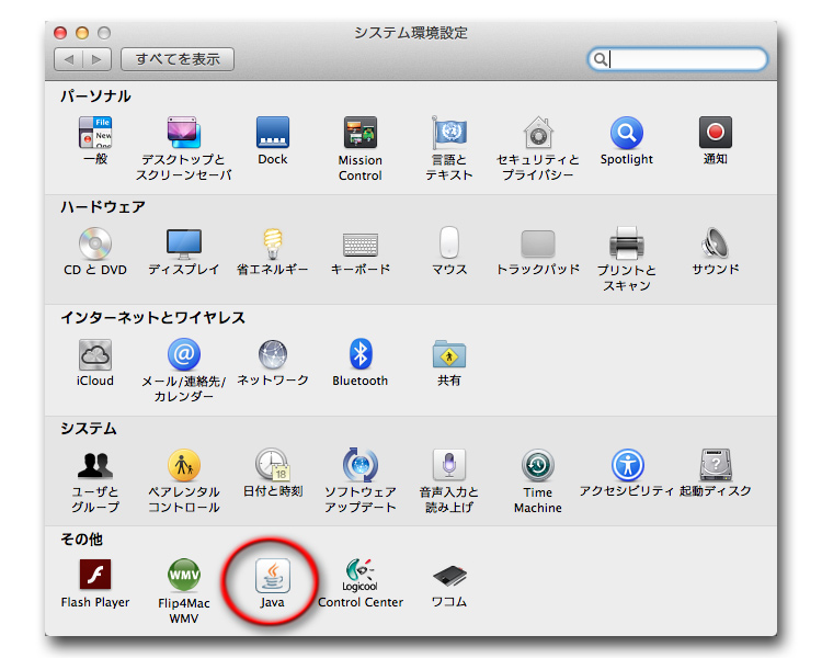 ここからJAVAのコンパネを起動する。後はWindows時代に見慣れた