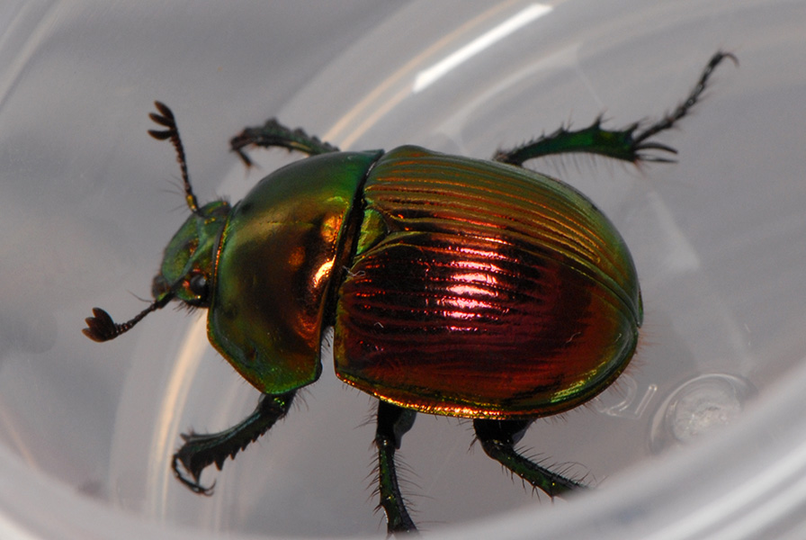 昼の山肌を翔び回っていたオオセンチコガネです。