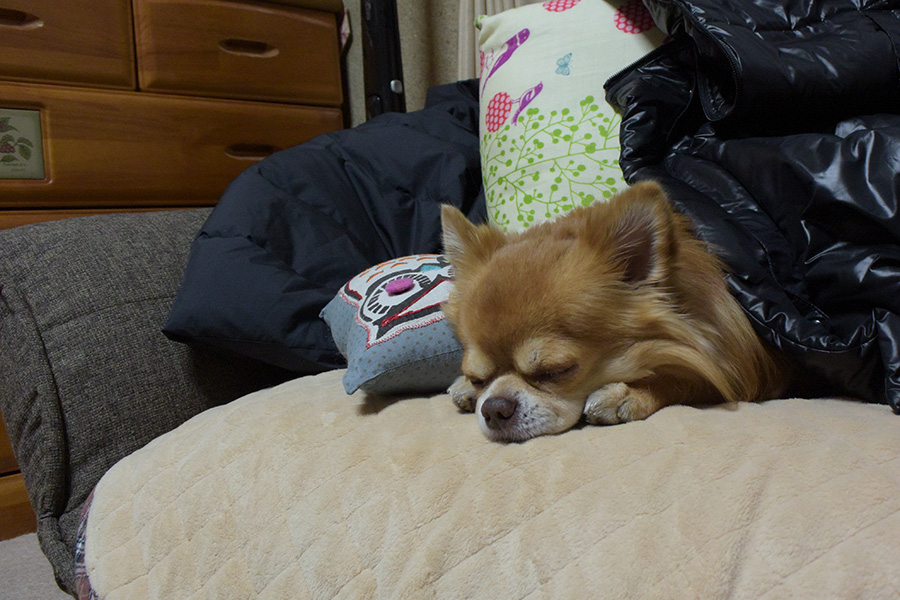 (一応犬なので)散歩に出る時は大喜びなんですが、30分くらいで疲れてしまうようで、戻るとほぼこんな感じです。