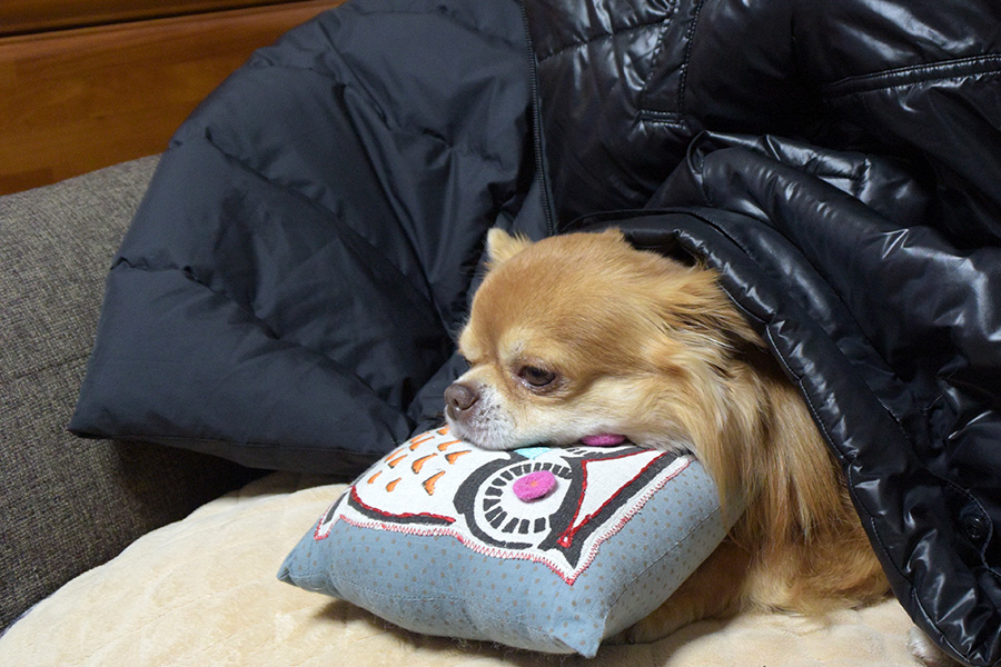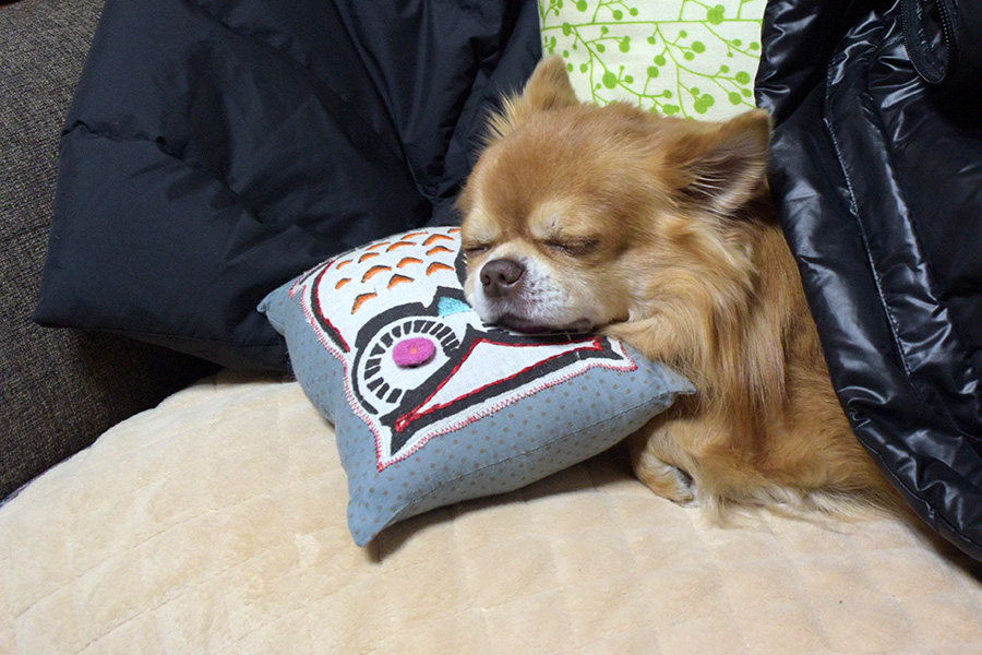 そんなわけで、散歩、食事、おやつ以外はすっかり寝正月なつくしです。枕はあってもなくても関係ないみたい・・・