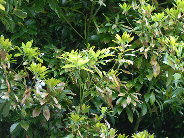こんな身近なところにいるって、それはそれで嬉しいことですが、食害の激しさを見ると、単純に喜んでばかりもいられず、少しばかり複雑な気持ちになります。ルッキングで数頭確認した後、試しに梢を掬ってみたところ、下に落ちたりネットに入ったり、あっという間に10頭以上が確認できてしまいました。