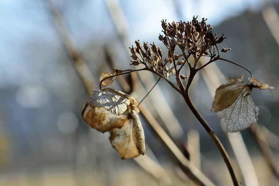 枯れ残った前年の花が、早春の陽を浴びていました。