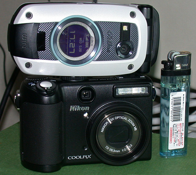 防水、対衝撃性などを求めたため、普通の携帯よりも大きいですが、それでも携帯電話とタメのサイズ。百円ライターより背が低いです。