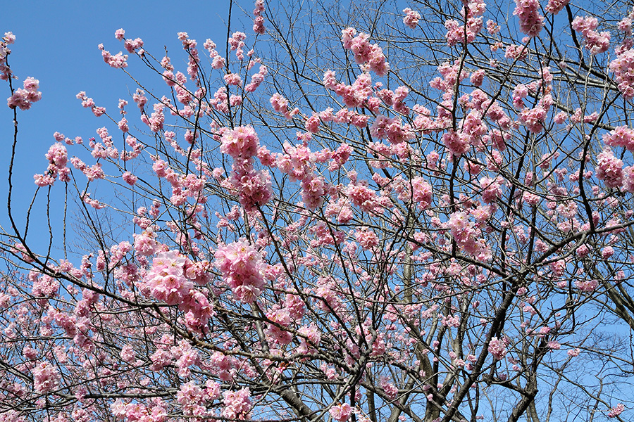 ツバキカンザクラが満開を迎えていました。