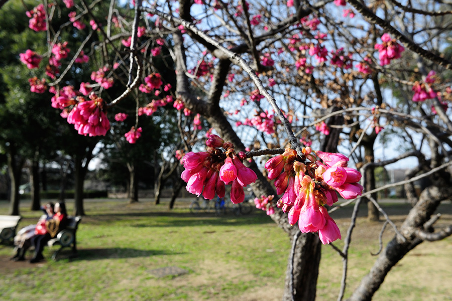 Cherry blossoms of 'Kanhi-zakura' in Kashiwanoha-park, Kashiwa city, Chiba, Japan.