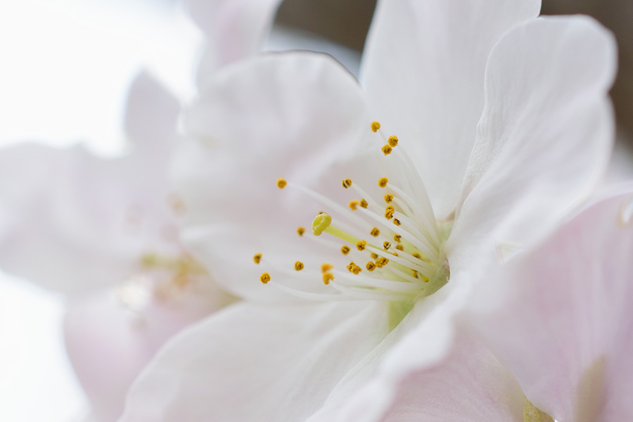 オオシマザクラとエドヒガンの交雑品種のひとつで、葉が少し開いた状態で純白の花を開き、満開の頃から桜色に染まっていきます。