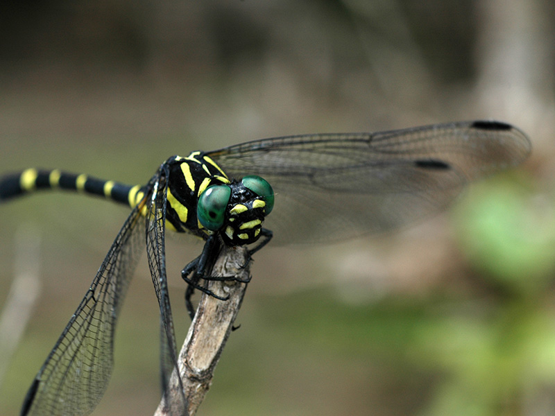 真夏の桑畑でトラフカミキリと戯れていたときに、静かに佇んでいた美しいサナエトンボはオナガサナエの♀でした。