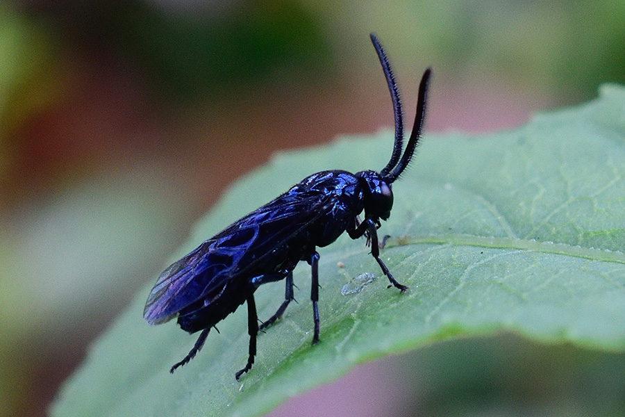 チュウレンジバチの仲間では脚部も含めて全身黒、または濃いるり色をしているので、比較的判り易いかもしれません。