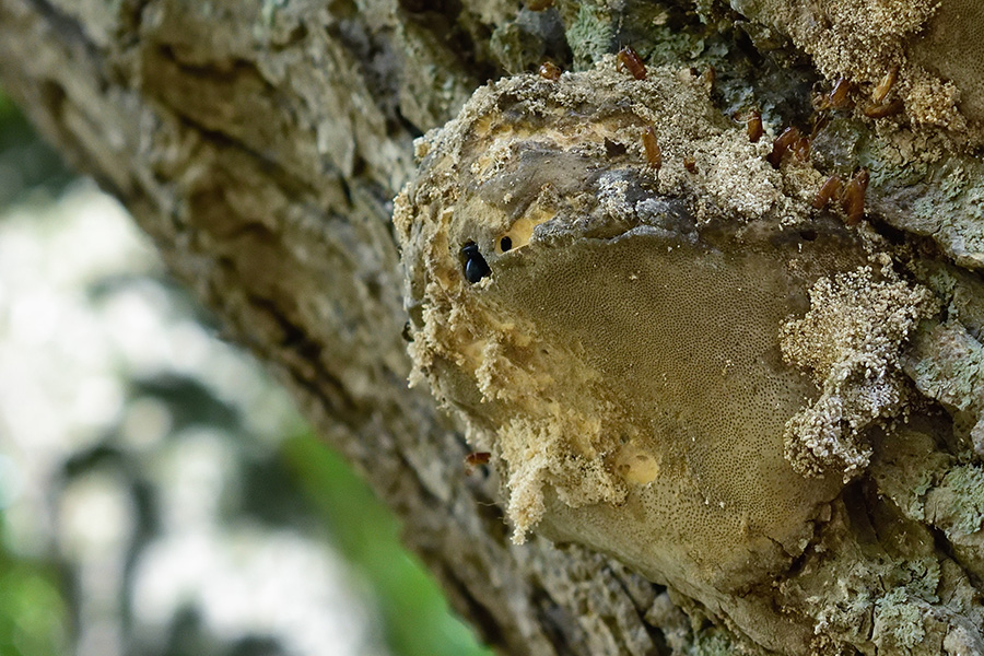 なにやら、堅そうなキノコの中にびっしり入り込んでいました。