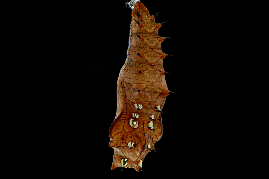 A pupa of Indian Fritillary in Kashiwa city, Chiba prefecture, Japan.