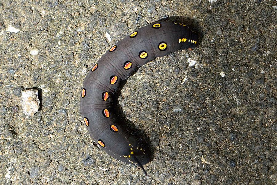A horned worm of Japanese Sphinx Moth in Kashiwa city, Chiba prefecture, Japan.