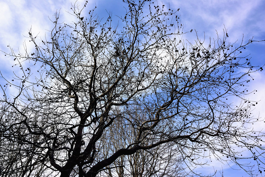 紅葉の頃から実が落ちはじめますが、真冬になっても結構枝に残っています。