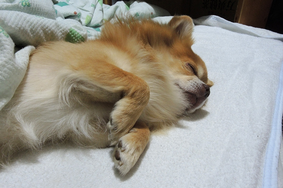 何が気に入ったのか、時々私の布団で転た寝しています。 寝姿はただのオヤヂですね。