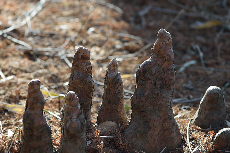 Aerial roots of Bald cypress in Kashiwa city, Chiba prefecture, Japan.