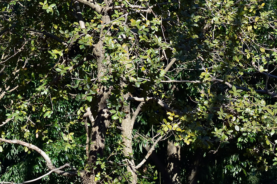 葉は丸みを帯びていて硬く、乾いた印象で、少し表側に向って盛り上がっています。樹皮は、それほど太くないものでも、強くひび割れます。材そのものも非常に硬く締まっていて、水に沈むそうです。雌雄同株で、ブナ科なので団栗もなります。