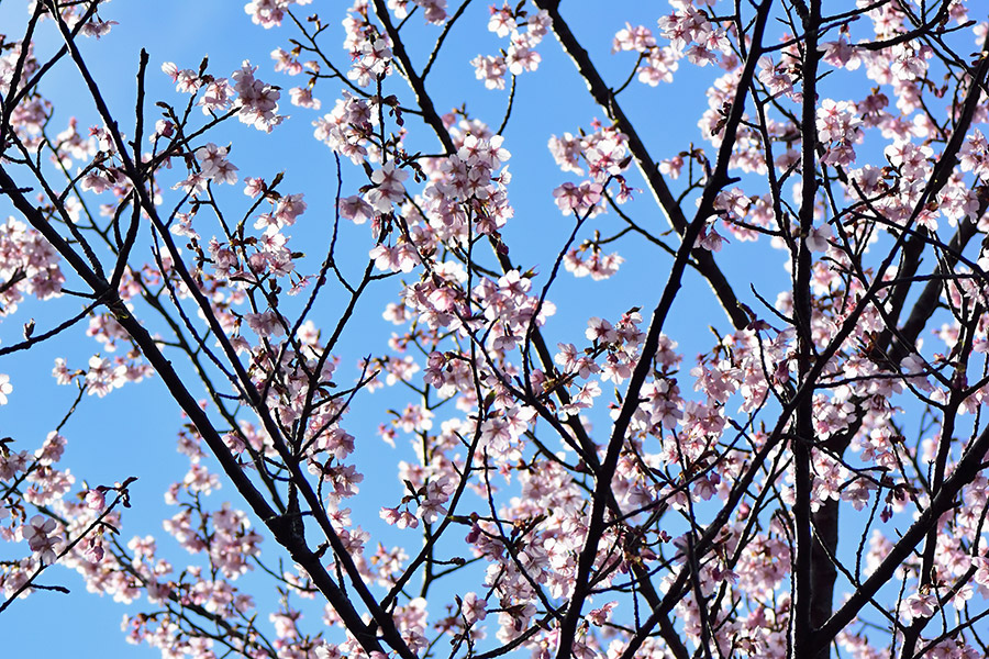 Cherry blossoms of 'Shuzenji-kan-zakura' in Kashiwa city, Chiba prefecture, Japan.