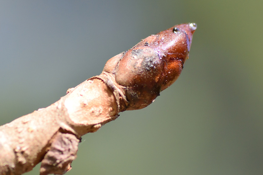 食害する虫対策でしょうか、冬芽はべとべとした樹脂に被われています。