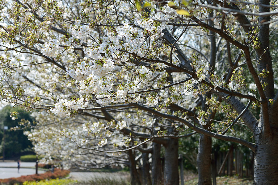 オオシマザクラとエドヒガンの交雑品種のひとつで、葉が少し開いた状態で純白の花を開き、満開の頃から桜色に染まっていきます。