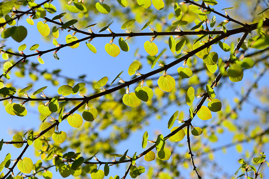 芽吹きの頃の赤味が抜け、風に負けない強さとしなやかさを誇るような若葉になってきました。