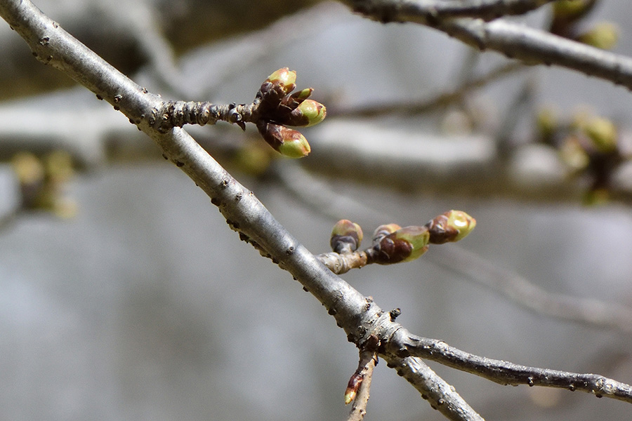 Buds of 'Ohshima-zakura' in Kashiwa city, Chiba prefecture, Japan.