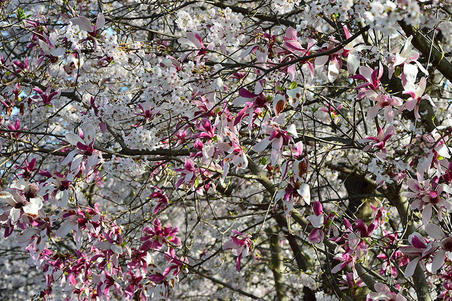 桜と一緒に植栽されており、開花時には近所で最も美しい街路になります。